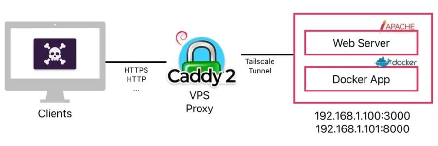 Hands-on guide for securely exposing self-hosted services without port forwarding by using a small VPS with Caddy and Tailscale.